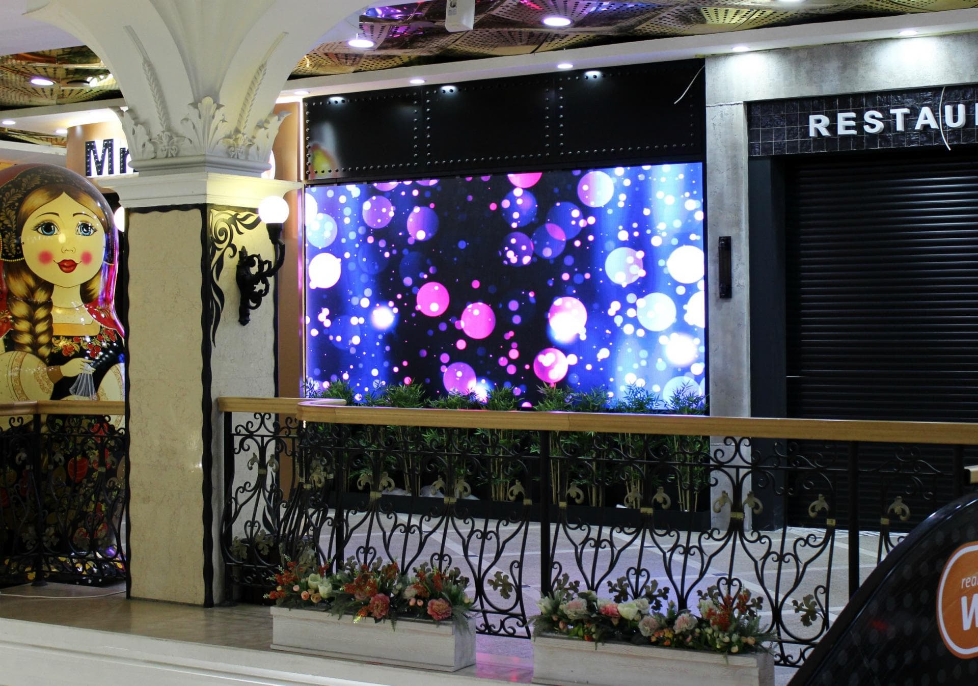 Наша компания произвела монтаж и подключение светодиодного экрана в ресторане Мистер Чанг по заказу компании АудиоВидеоСистемы. Экраны установлены над кальянной зоной и на входе ресторана.