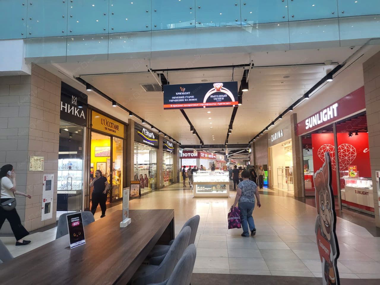 Два внутренних светодиодных экрана с шагом Р2.5 выполняют рекламную функцию и уведомляют об акциях и другой полезной информации от арендаторов торгового центра. Внутренние LED экраны установлены подвесным способом, с фронтальным методом обслуживания.